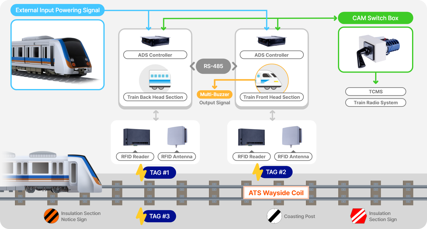RFID ADS Automatic Switching System performs the function of automatic switching from AC to DC or DC to AC by detecting RFID Tag information installed in AC/DC neutral section.