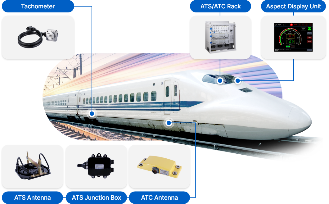As the ATS/ATC integrated On-board signaling system, an integrated system of Automatic Train Stop (ATS) and Automatic Train Control (ATC), ATS and ATC sections can be operated as a single system by establishing an optimal signal device. On-board Signaling System consists of ATS/ATC Rack, Aspect Display Unit (ADU), ATC Antenna, ATS Antenna, ATS Junction Box and Tachometer.