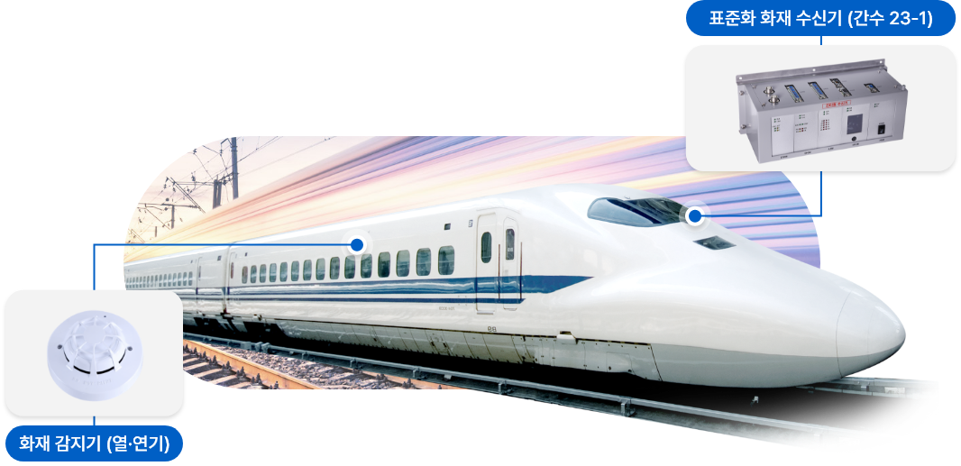 화재감지장치는 열차 화재 시 발생되는 열과 연기를 신속하게 검지하여 열차종합제어장치로 전송함으로써 승객의 안전 및 열차 화재 사고를 예방할 수 있는 장치입니다. 국내 최대 규모의 수주를 자랑하는 공식공급업체로 국내 및 해외에서 성공적으로 운영 중에 있습니다. 화재감지장치는 화재수신기, 화재감지기로 구성되어 있습니다.